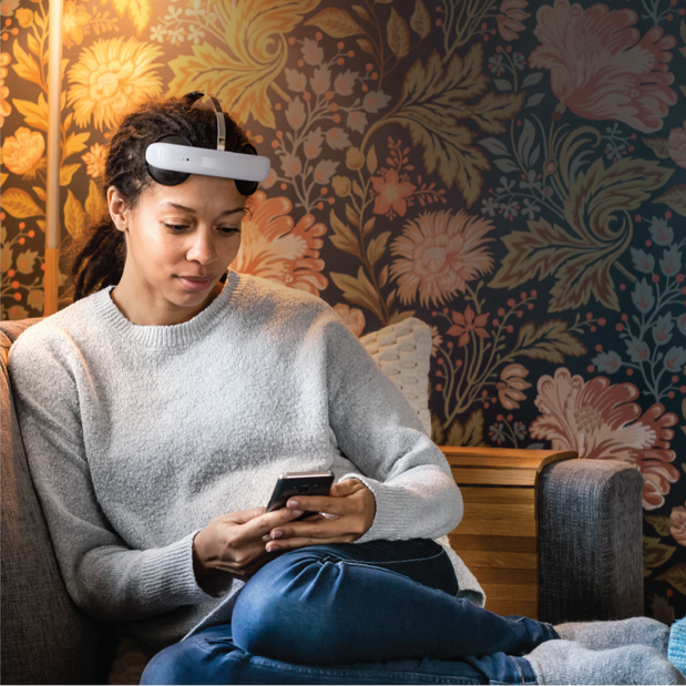 The Flow headset uses a gentle electrical current to restore brain activity and reduce depressive symptoms. This technology is called transcranial Direct Current Stimulation (tDCS).